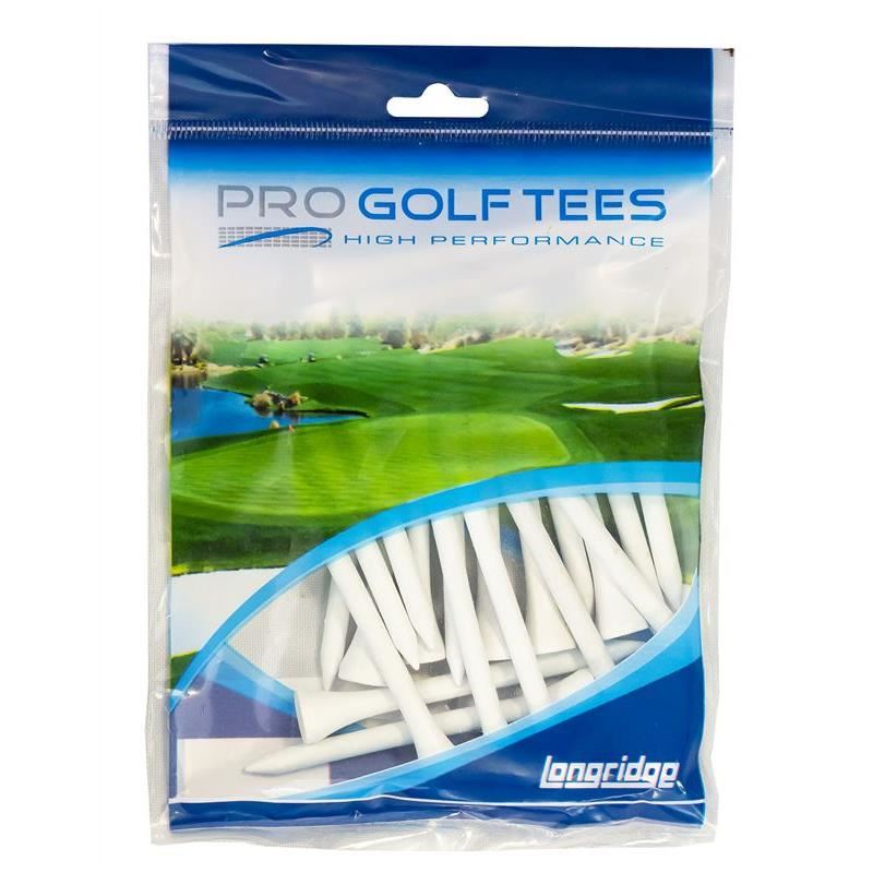 Tee-uri albe din lemn Longridge 83 mm inaltime, alb stralucitor, ideal pentru utilizare cu un iron sau fairway wood.