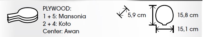 Cu furnirurile exterioare Mansonia s-a folosit un furnir si mai putin cunoscut in tenis de masa, Koto ca al doilea strat si un nucleu Awan. Aceste fatete sunt ceva mai dure si ofera valori mari de viteza si o forta de penetrare enorma chiar si de la jumatatea distantei.