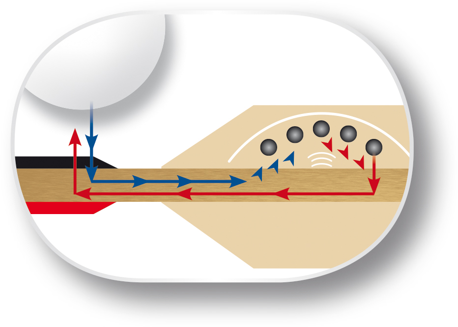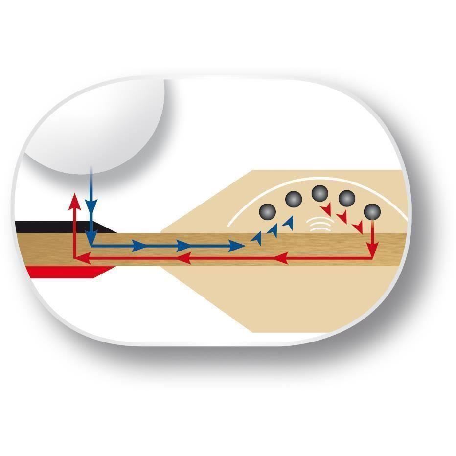 KINETIC HANDLE: Inovatie inserata in manerul paletei, sferele kinetice absorb energia de impact a mingiei, se deplaseaza pe directia loviturii. Mingea capata o accelerare aditionala. Rezultatul este de confort in lovituri cu un surplus de putere.