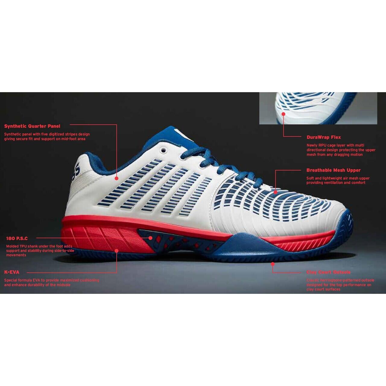 Pantofii de tenis K-Swiss Express Light 3 Clay sunt perfecti pentru jucatorii care cauta o buna stabilitate si siguranta in timpul miscarilor laterale fara a sacrifica confortul si respirabilitatea. Potrivit pentru terenuri pe zgura.