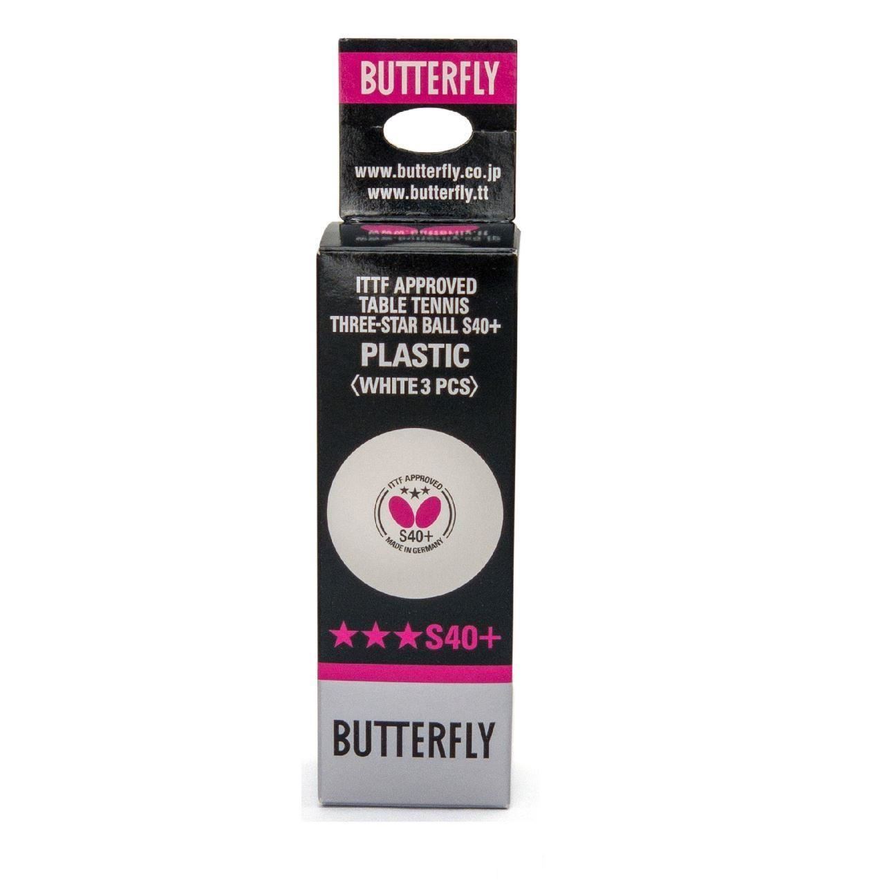 Mingile de tenis de masa realizate din materialul inovativ ABS au devenit din ce in ce mai populare in randul jucatorilor de toate nivelurile. Butterfly S40 + este un produs al dezvoltarii continue si a experientei bogate in fabricarea de mingi de competitie din material ABS din Germania, ceea ce duce la o imbunatatire marcanta a caracteristicilor de joc: S40 + prezinta o suprafata mai dura, ceea ce face mai usor sa transmita rotirea pe bila in timp ce frecarea crescuta va duce, de asemenea, la o respingere mai scazuta in timpul jocului topspin si un sunet mai discret. Rotunjimea uniforma si duritatea au ca rezultat incredere si o durabilitate ridicata.