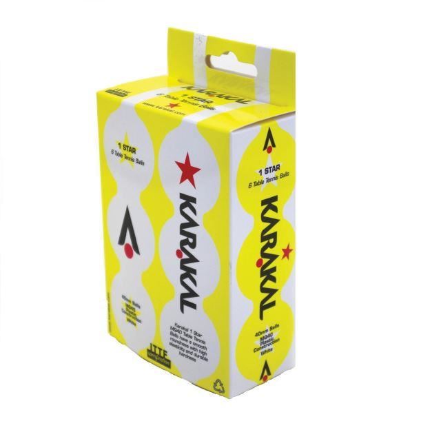Set 6 mingi antrenament tenis de masa Karakal, albe, 1 stea, ITTF