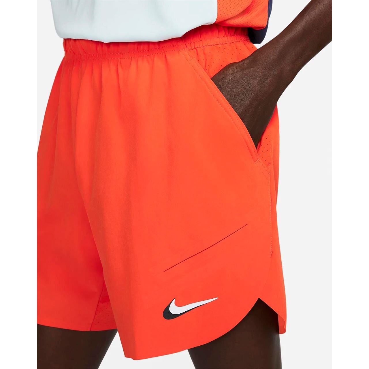 Tehnologia Nike Dri-FIT ADV combina tesatura care elimina umezeala cu o inginerie avansata si caracteristici pentru a va ajuta sa ramaneti uscat si confortabil. Tesatura din tricot deschis sub spatele taliei si de-a lungul piciorului interior imbunatateste fluxul de aer pentru a va ajuta sa ramaneti racoros. Pliurile unghiulare din partea de jos a fiecarui buzunar se extind pentru a lasa mingile de tenis sa cada si sa stea in siguranta in timp ce alergi pe teren.